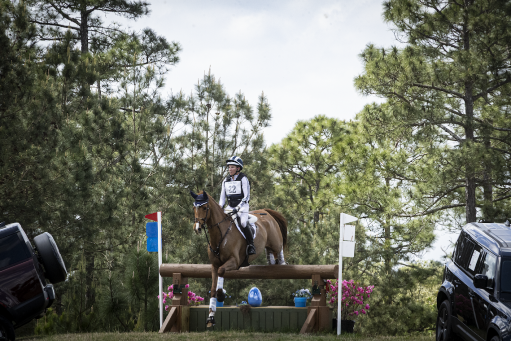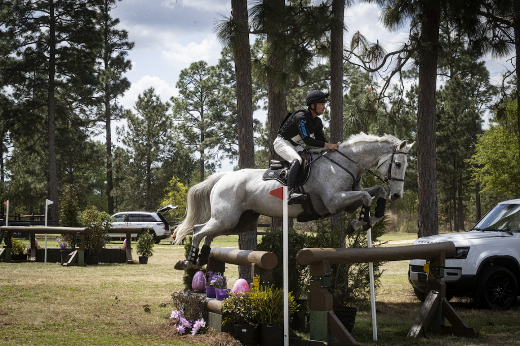 Charles Pinnell, cross-country announcer, said it best—it was a “picture-perfect Saturday here in Aiken, South Carolina.” The CCI4*-S division closed out their competition by taking on Helen West’s cross-country course. They were one of only two double-clear rounds in the division, and one of those belonged to winners Lucienne Bellissimo (USA) and Dyri.