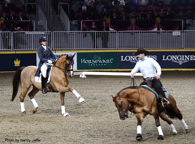 - There are always interesting exhibitions at the show, with a dressage and reining pas de deux along the lines of the song “Anything You Can Do I Can Do Better” performed by Grand Prix rider Esther Mortimer on Diamond Geezer and reiner Loris Epis on Wimpy’s Tinseltown.
