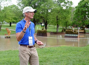 Rolex Kentucky cross-country course designer Derek di Grazia talks about changes he’s made to the signature Head of the Lake for this year. | Photo copyright 2016 by Nancy JafferI talked with Rolex veteran Sinead Halpin, whose best finish here was an impressive third place with Manoir de Carneville, about how tough the course is–and how much tougher it can be if it’s storm-soaked.