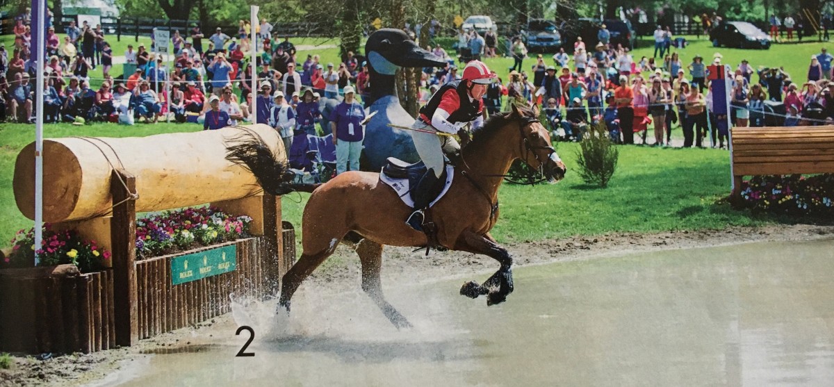 If you horse was really aggressive you knew he’d pull himself right through but you had to guard against too much speed. If your horse was the kind that ikes to slow down and look you had to ride him strongly or he’d either stop at the fence on top or jump from such a short stride that he’d land vertically and peck in the water. Therefore the approach to this fence had to be ridden in a very precise bracket, aggressively but not too aggressively.