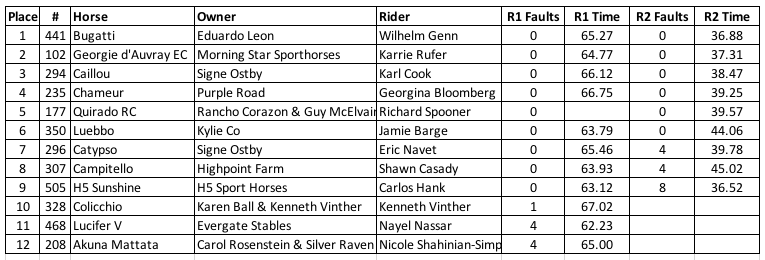 Rounding out the podium in third place was another California native, Karl Cook aboard Caillou, an 11-year-old grey Holsteiner gelding owned by Signe Ostby. “It was my horse’s first World Cup™ qualifier class and I couldn’t be prouder of how he did,” said Cook of Caillou. “I was happy with how I executed the plan that we walked and how it all came together.”