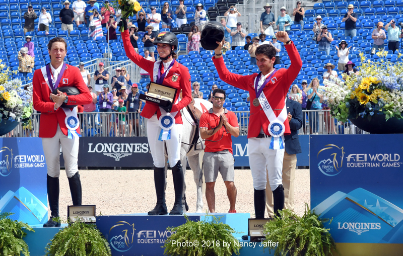 Although she stood fourth when that class at the Tryon International Equestrian Center finished, I still wasn’t figuring her for a spot on the individual podium, though she was part of the German bronze medal team, headed by world number three Marcus Ehning. After all, 29-year-old Simone is ranked number 142 in the world, and a lot of those ahead of her in the standings demanded much more attention for my predictions.