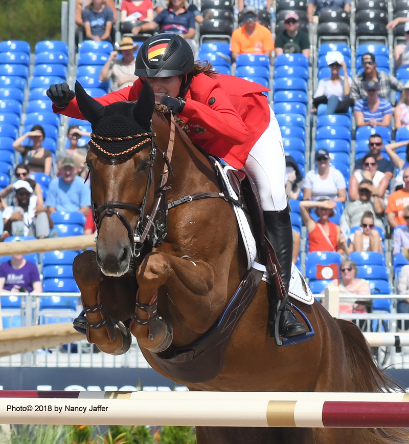 The first time I ever saw Simone Blum of Germany, she was raising her arm in triumph following a clean round with the impeccable DSP Alice on the second day of show jumping at the FEI World Equestrian Games. I took a photo, impressed by both her performance and her confidence, but I have to admit she wasn’t on my medals radar. And I’ll bet most of you had never heard of her either.