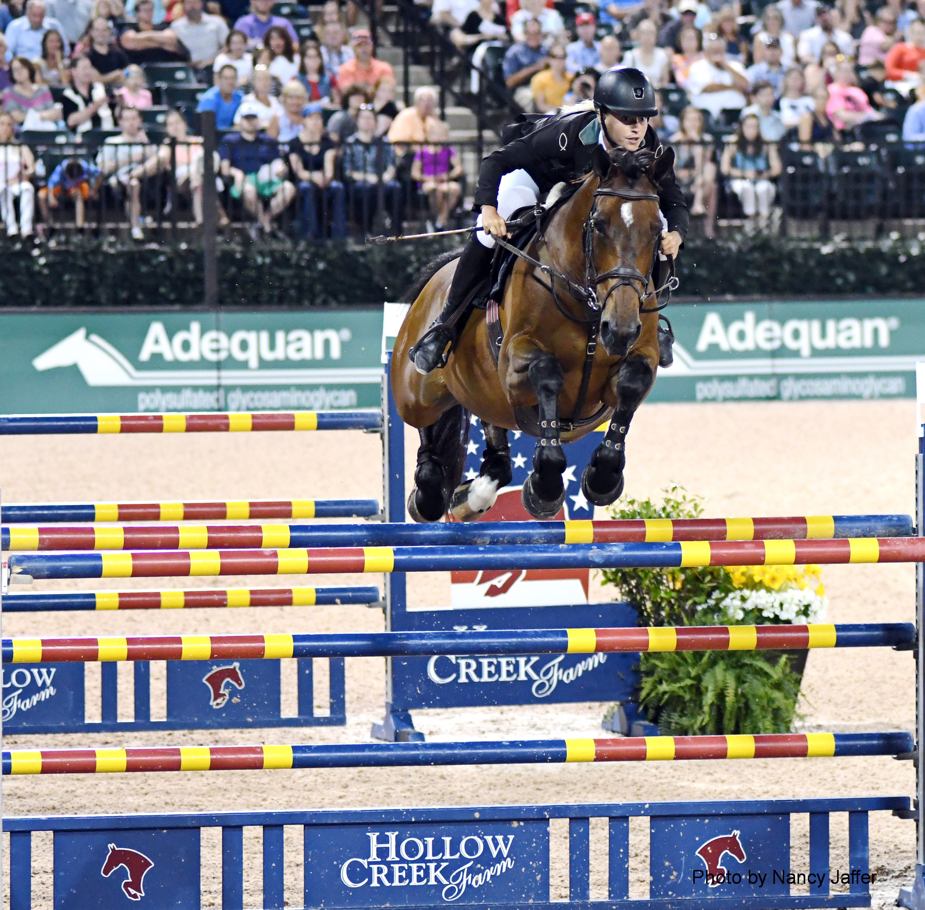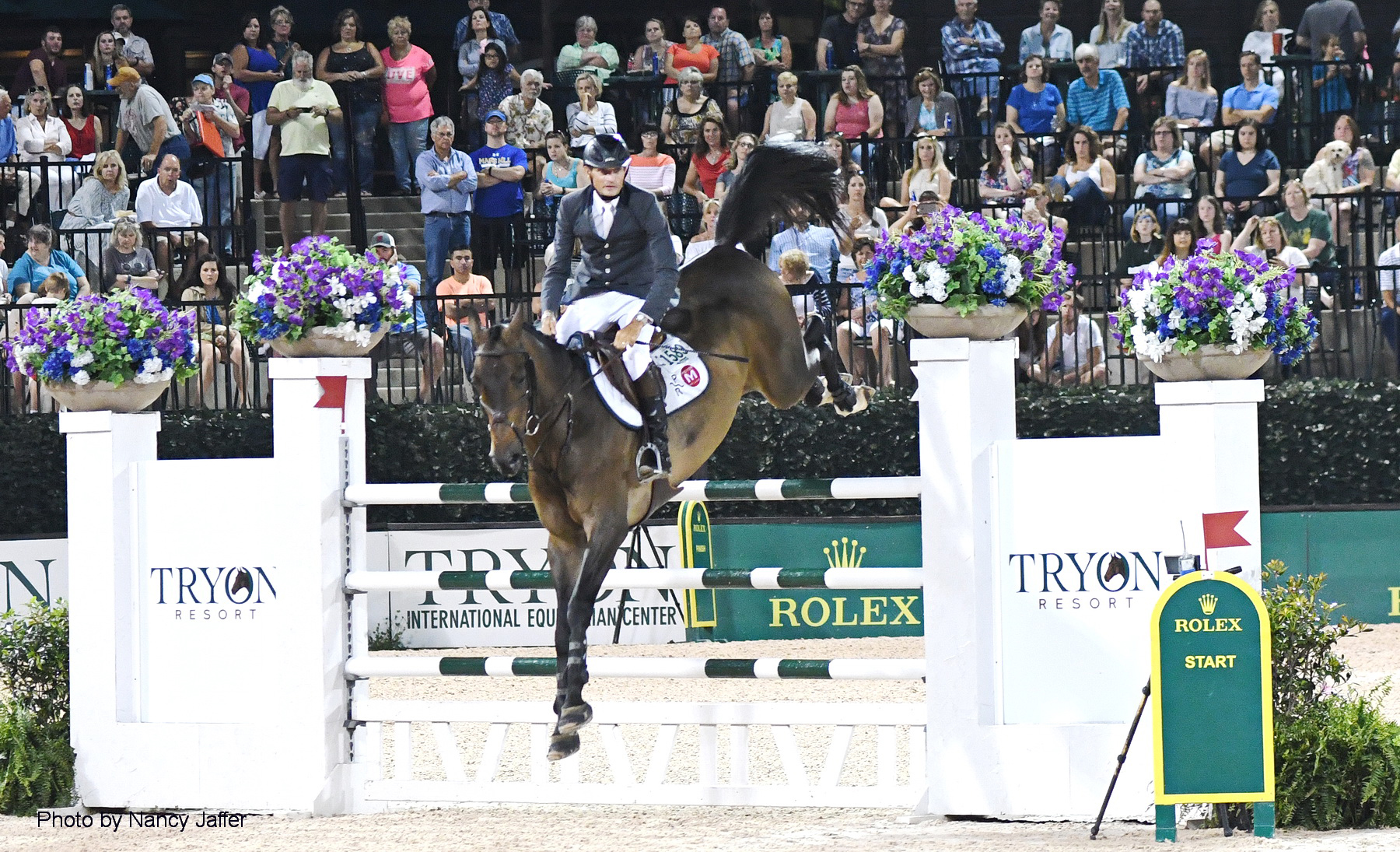 So as the spring season’s 4-star jumper show wrapped up at the facility before a packed house last night with the $216,000 Horseware Ireland Grand Prix, it seemed fitting that the class went to Eric Navet of France, who took double gold in the first WEG 27 years ago.
