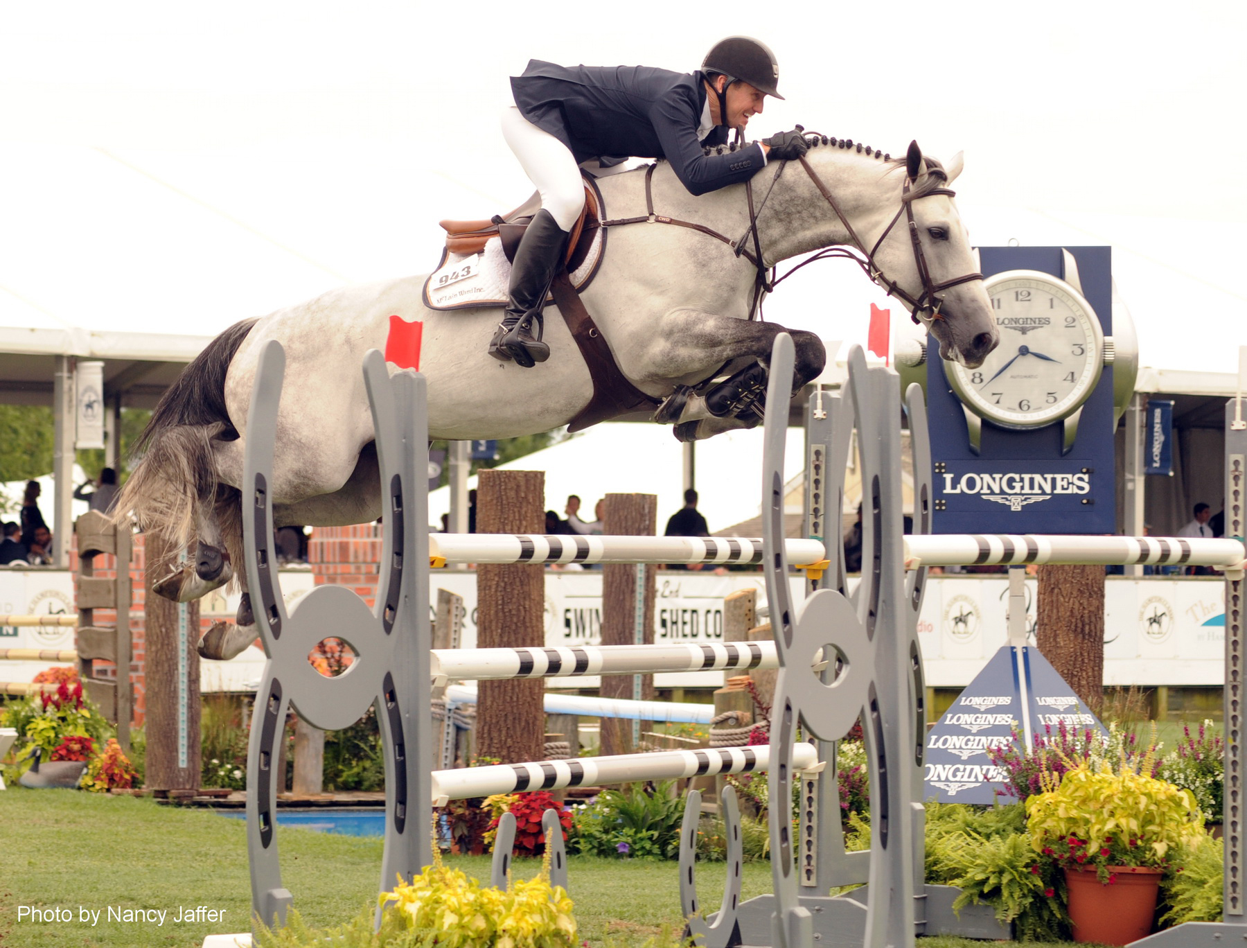 McLain is another rider who does well at the Hampton Classic. He’s been bringing out new horse after new horse here, as he’s obviously in retrenching mode. Rothchild, his longtime stalwart, is about to be 17 and will soon be retired. Since that quirky chestnut has jumped his last in competition, it’s time for McLain to bring in the new recruits (he seems partial to grays) and build up his string.