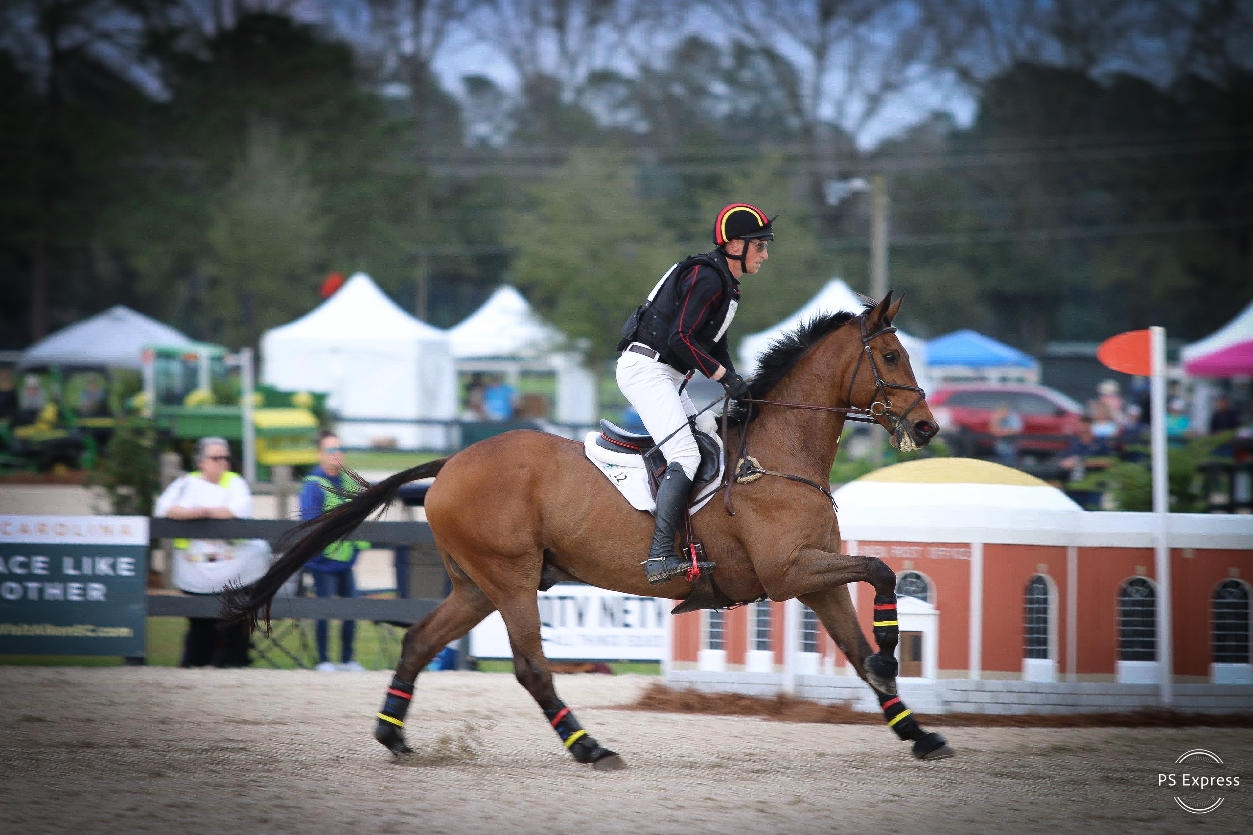 Crowds packed into Bruce’s Field at the Aiken Horse Park to watch the class and cheer on their favorite riders, many of whom put on quite a show with their speedy rounds. “We were flying! I was literally so focused, I nearly blew past my line [to the keyhole jump]. I was like, what am I doing?! Oh well, we’ll just angle it! He was class to just come in there and angle it for me. It’s good for him, a little training,” she added with a laugh. “I loved how he just operated off the turns. He can be a bit slow in his mind sometimes, but he was fully on it in every way.”