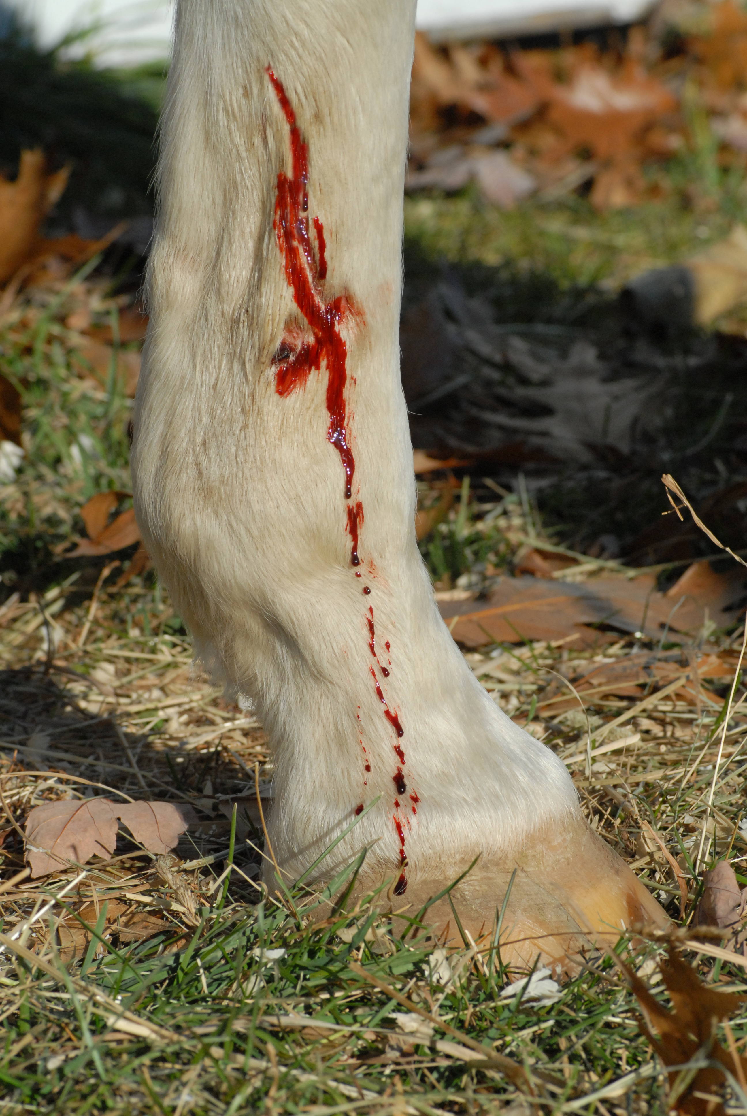 - Clean the wound with sterile saline solution or a gentle stream of water from a hose to flush out dirt and debris. But don’t attempt to remove large or deeply embedded pieces of debris—splinters, a nail in the hoof—without consulting with the vet.