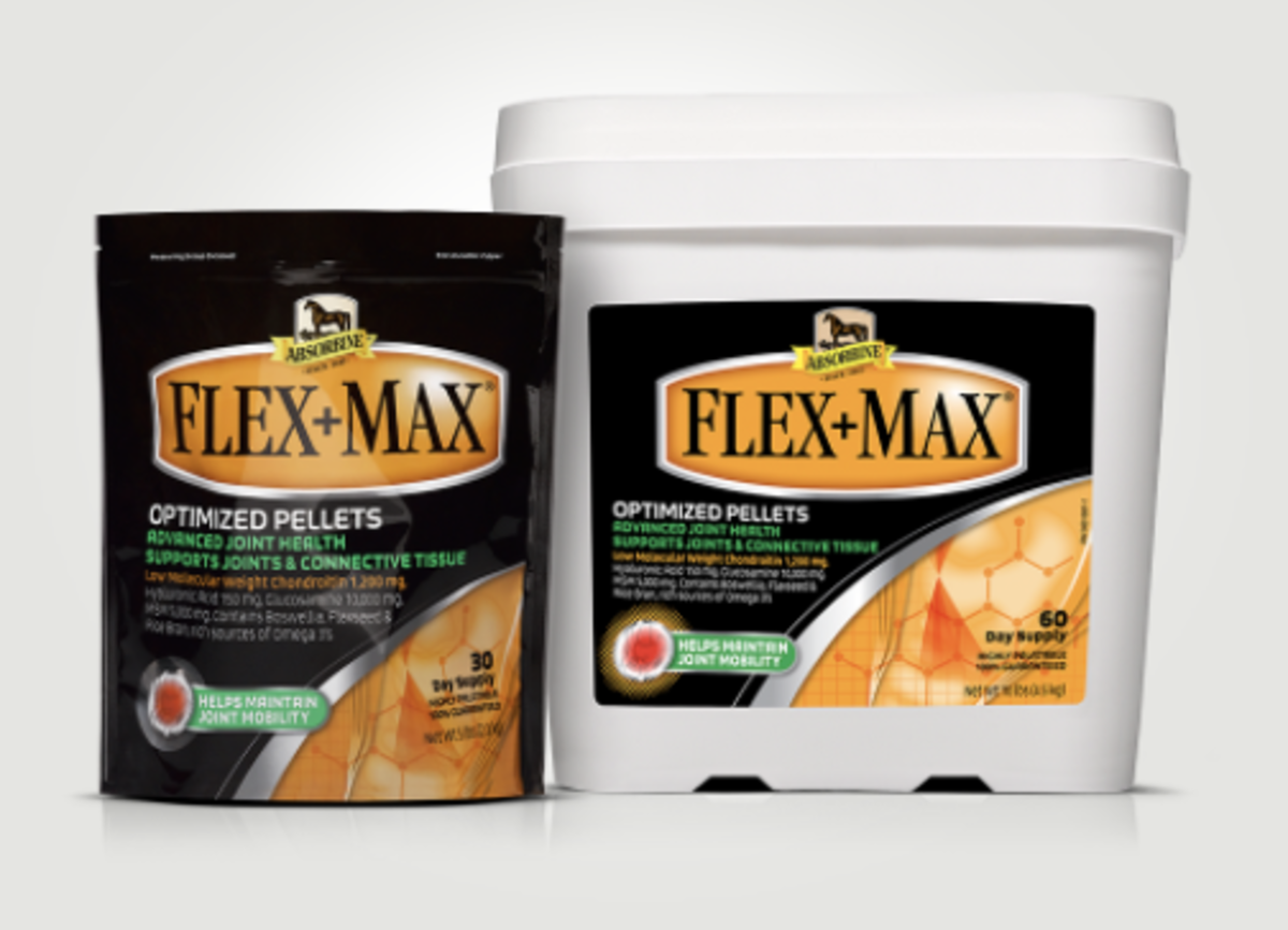 If your horse needs a little more specific joint health support, consider Absorbine’s Flex+Max® Joint Health Supplement. Its highly effective formula, with guaranteed levels of chondroitin and glucosamine, can give you peace of mind that your horse is actually getting what he needs for his joints. It also contains HA, MSM and boswellia serrata to provide additional joint support. Visit www.FlexMaxPlus.com for more information.