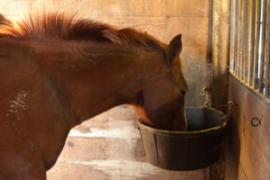 After weaning, it’s easiest to regulate your foal’s grain ration by feeding him individually. However, if it’s more convenient to continue feeding him in a group, monitor his grain intake carefully. Without the option of his mother’s milk, he may be tempted to eat more grain than he needs. On the flip side, he may eat too little grain if other foals bully him away from it.
