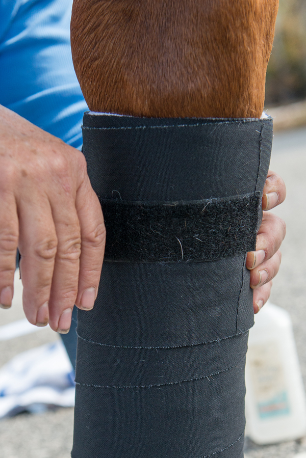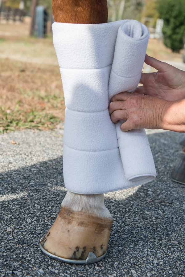 A standing wrap—which comprises a cotton base or quilted fabric with a bandage to hold it in place and is applied to the horse’s lower leg—is used for a variety of reasons and with or without additional substances on the legs.