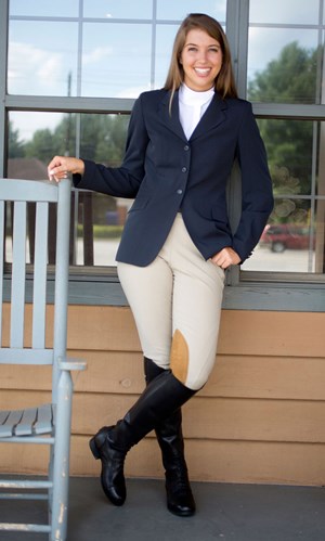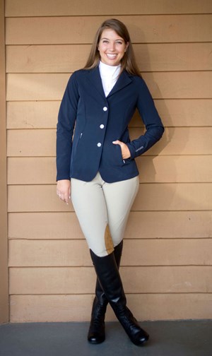Head to a tack shop that you trust and put yourself in the hands of a savvy staffer who’ll help you navigate the sea of choices in equestrian apparel. The emergence of technical fabrics—those state-of-the-art materials that wick moisture, repel odors, resist pilling, protect against the sun’s harmful rays and more—has transformed traditional riding wear and broadened the offerings in all categories. So, too, has the influence of European-inspired designs. Closer-to-the-body cuts and fashion-forward styling now give classic breeches, shirts and show jackets a decidedly 21st century flair. It’s a welcome trend for riders who are physically fit and well-toned, but it can be intimidating for anyone whose figure falls short of perfection. To satisfy those riders’ needs, makers are incorporating figure-enhancing features—slimming seaming details, physique-shaping panels, concealed zippers for smoother lines—into many garments and adding accents such as contrasting piping and colorful linings to allow for a bit of self-expression. The upside: more options in equestrian apparel from which to choose. The downside: having all those choices overwhelm you as you shop for show wear that not only is appropriate for your discipline but that also makes you look great and feel good.