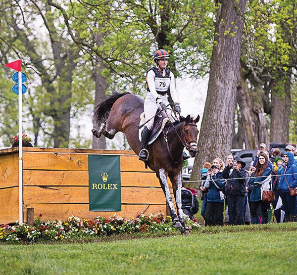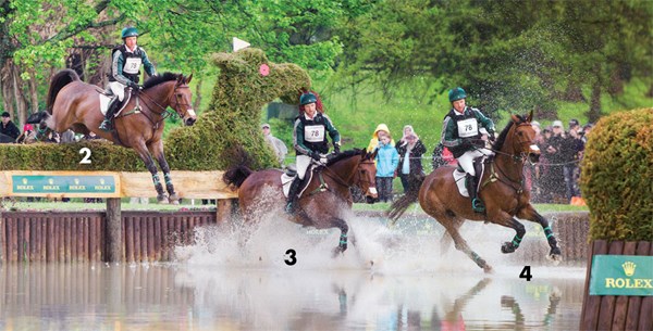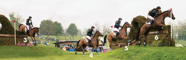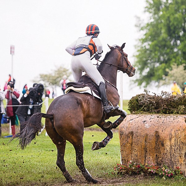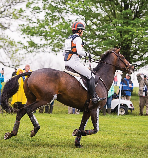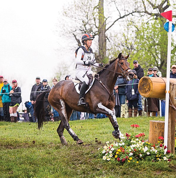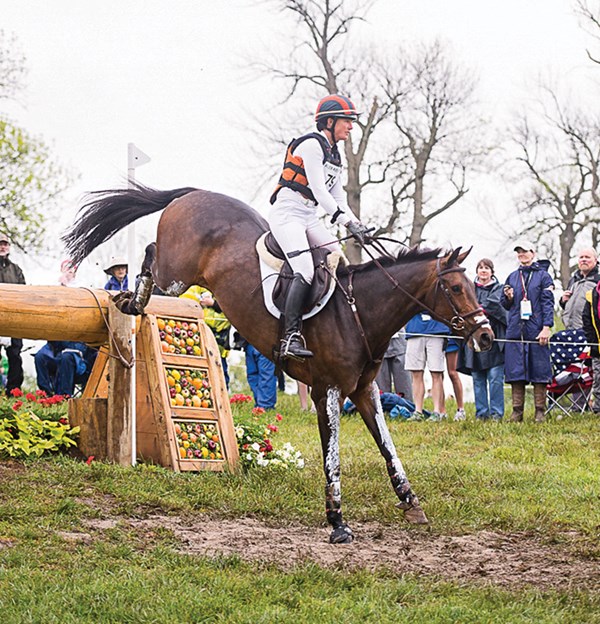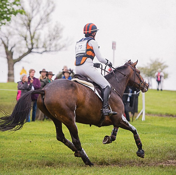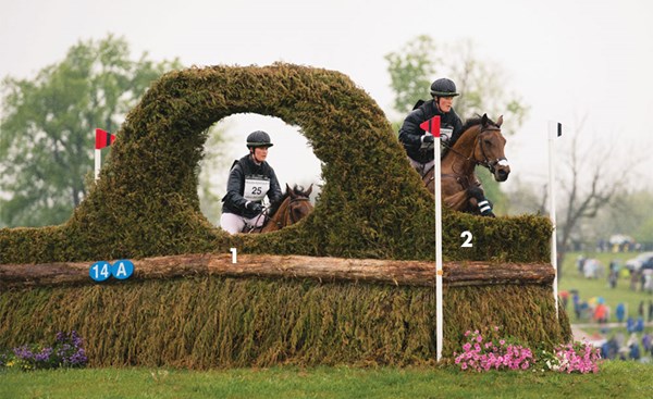 1. It takes a brave horse and rider to gallop up to something that the horse can’t see over. Maya Black and Dawn Dofelmier’s Doesn’t Play Fair (Cody), on their way to third place, are shown here in the final approach to the Curving Brushes at the Mounds, Fences 14AB. When the 15.3-hand, 11-year-old Holsteiner gelding is reincarnated, he will come back as a Jack Russell terrier. I have watched him for several years while he and Maya worked their way up the ranks, and he makes me laugh. He shows up at every event with a little-guy chip on his shoulder. He might be the smallest horse there, but he is going to make up for it with attitude, and Maya is going to match his efforts with talent and a work ethic to die for.