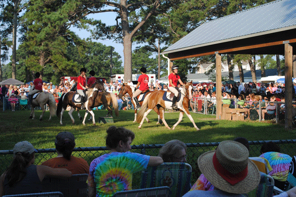 The Chincoteague Pony Centre gives visitors an opportunity to learn about the famous ponies and interact with them. It is home to the largest herd of Misty-family ponies and to many veterans of the annual swim that the wild ponies make from nearby Assateague Island. During the summer, the facility offers rides, lessons, a day camp and a nighttime show where spectators get to meet ponies and riders and watch them perform. Each evening the ponies demonstrate their versatility and athleticism as they complete a challenging obstacle course in the timed showcase event, the Extreme Chincoteague Pony Race. I was looking forward to being part of it all.