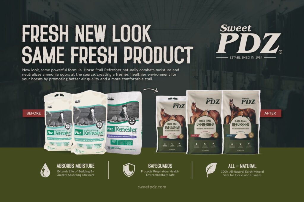 We believe this updated branding will allow Sweet PDZ to stand out in the marketplace and provide customers with an even more compelling reason to choose this industry-leading ammonia and odor control solution. After more than forty years of providing superior odor control and making barns/stalls safer and healthier, Sweet PDZ remains committed and passionate in providing horse enthusiasts with the best in animal wellness. For any questions or further details on the new look, please reach out to Sweet PDZ at www.sweetpdz.com or 800-367-1534.