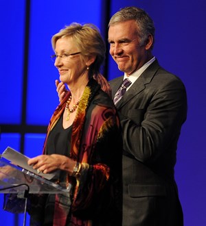 U.S. Equestrian Federation President Chrystine Tauber with former CEO Chris Welton at the 2015 Horse of the Year dinner | Photo copyright 2016 by Nancy JafferBut those things didn’t turn out as hoped, and the USEF board felt it was time for a change.