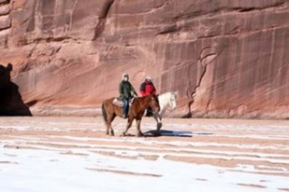 Hi from Arizona, where we are filming a new episode for our third season. We’re traveling from the Northeastern part of the state down to the border or Mexico. I was definitely reconsidering my choice for riding in Canyon de Chelly in the Navajo Nation in the Northeast in the winter, as I stuck my cold, gloved hand in my pocket to feel for the warm pouches that I used to use on ski trips as a kid. That is, until we reached the cliff dwellings. Carved high into a sandstone cliff peppered with snow lay the homes of the Ancient Pueblo People, known by the Navajo as the Anasazi. I was in awe. I had seen the photos online and in magazines, but nothing prepared me for seeing them in person.