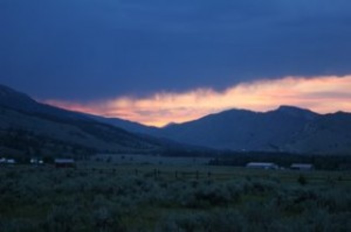 There is a forest fire somewhere in the vicinity, which is why, Dale tells us, they are getting these really pink sunsets. With the Tetons in the background and the sun setting, the sky looks like it’s on fire. We stop to take in the views. Jack nibbles on some grass below and I can’t believe how beautiful the land is here in the state of Wyoming.
