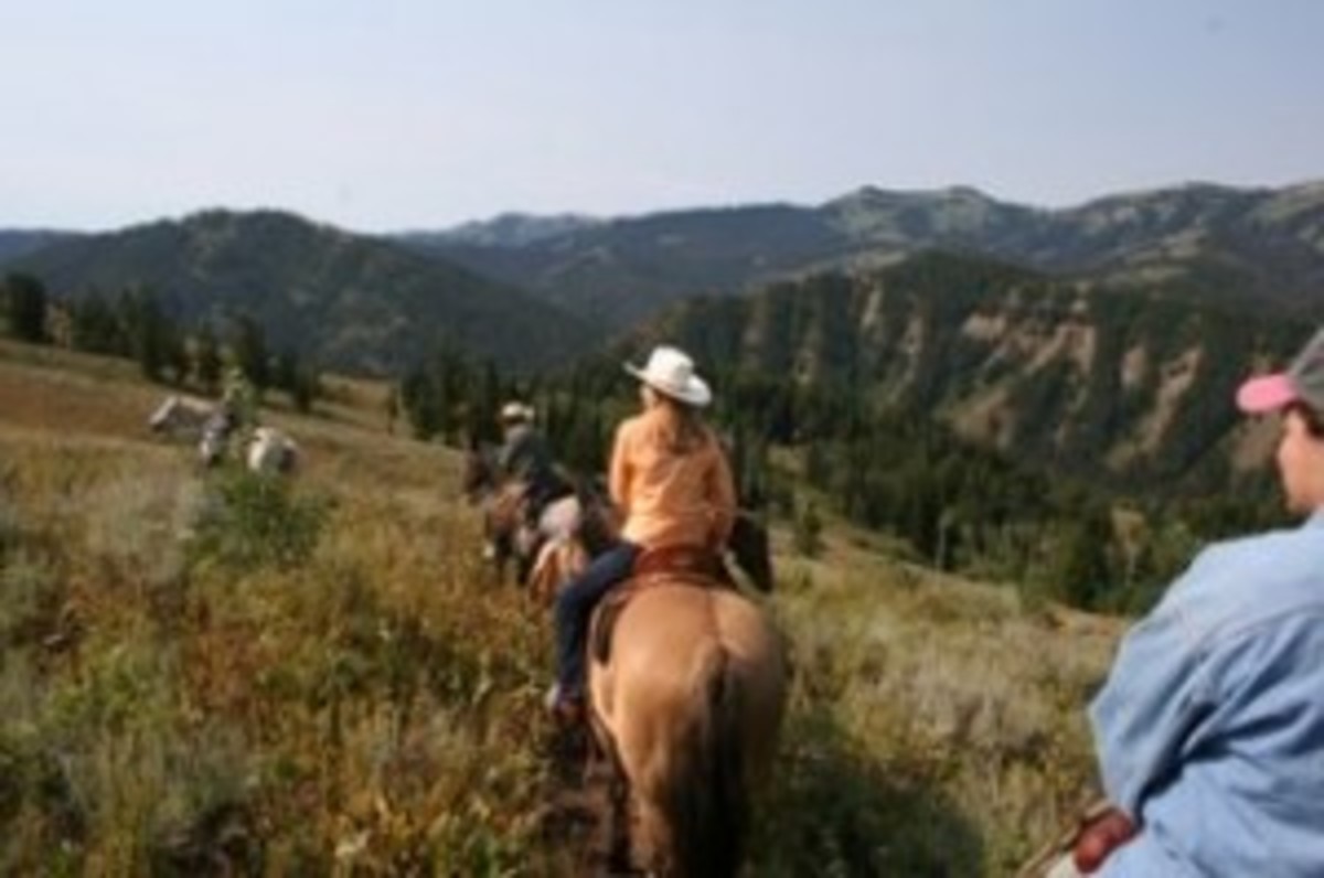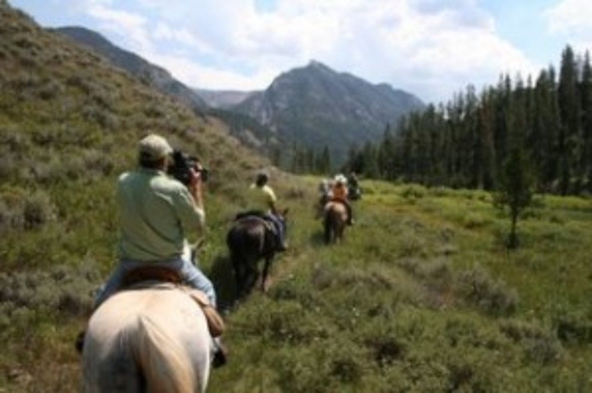 The ride in is about 10 miles and would usually take about 2.5 hours. It’s one of the many pack trips and equestrian vacations we’ve personally tested as we explore the world on horseback. The ride has a few steep and rocky trails. It traverses meadows of wild flowers, forests, Willow Creek and to a couple of spots with majestic views. Since our group was filming the ride, it took us a little over 4 hours to ride into camp.