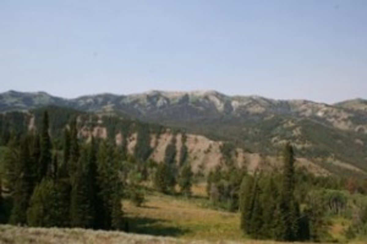 We couldn’t have picked a prettier day for our ride. The sky was blue with clouds, as we stared up the first incline and into the forest. We passed wildflowers in the forest, including Wyoming’s state flower, the bright red Indian Paint Brush. We rode through one valley that looked up to a large canyon in the distance. The valley had the remnants of a cabin left over from the original homesteaders who probably picked this spot for its stellar views.