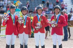 July 23, 2015–The final team medals in equestrian competition at the 2015 Pan American Games were decided this afternoon with the U.S. team taking the Team Bronze medal. The Nations Cup proved extremely competitive over both rounds of competition with clear rounds coming at a premium. The team comprised of Georgina Bloomberg, Kent Farrington, Lauren Hough, and McLain Ward finished on a total of 12 faults. The home nation of Canada won Team Gold on seven faults and Argentina took home their first team Pan American Medal in decades – a Team Silver on eight faults.