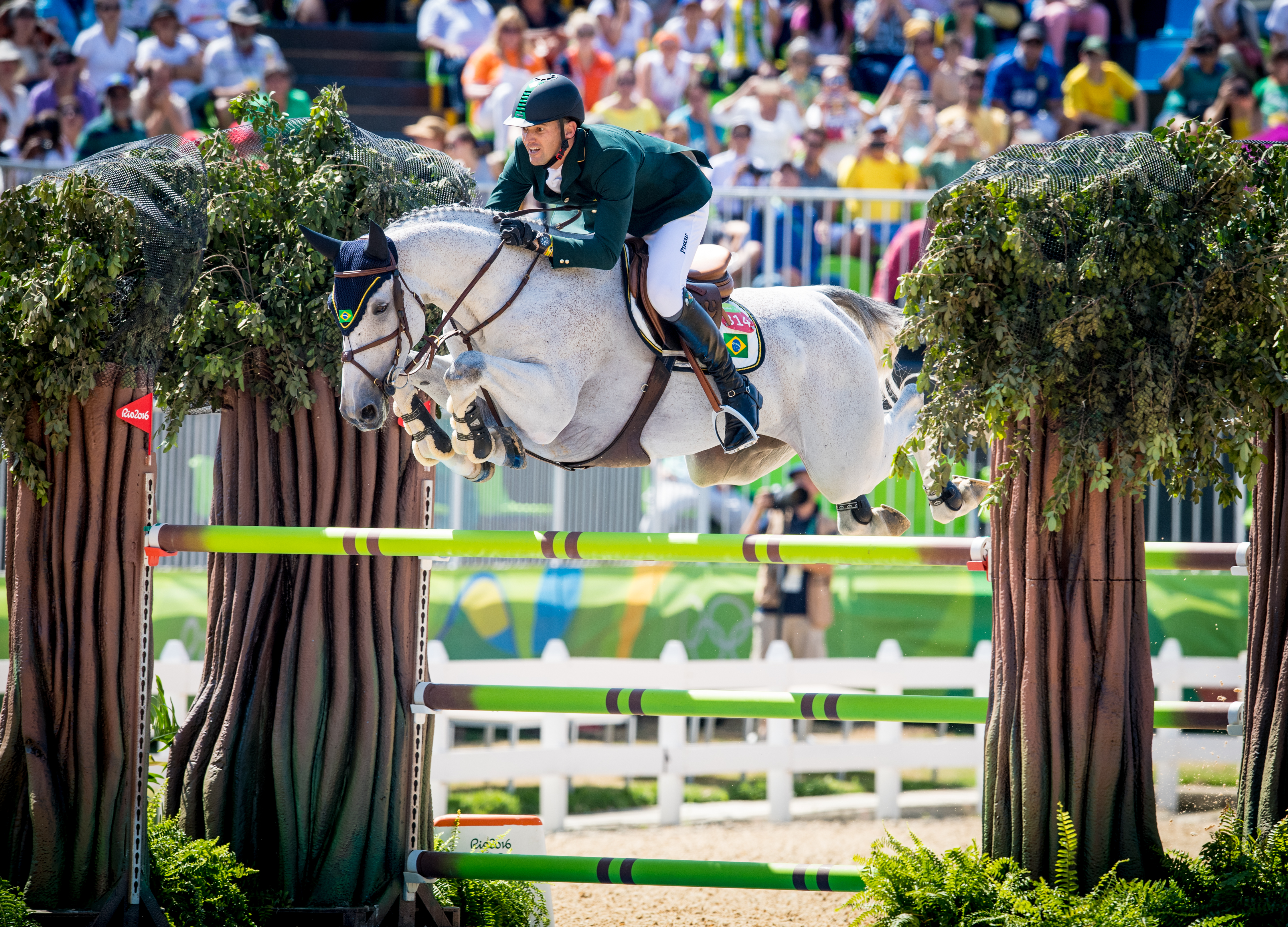 Of the Olympic experience in his home country and on a horse he’d predicted to ride there five years prior, Eduardo says he felt much more proud and excited than nervous—even riding first for Brazil, which drew the number-one slot, making him the first to tackle the Olympic track.