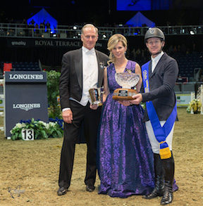 The Leading Canadian Rider Award, presented by AMJ, went to Jonathon Millar. In an interesting twist, Martha Louise and Ariana, both owned by the Grange family, tied for the All-Canadian Cup, presented to the leading Canadian-owned horse. The award is presented by Susan Grange’s Lothlorien Farm of Cheltenham, ON. Grange and her rider, Conor Swail of Ireland, accepted the All-Canadian Cup.