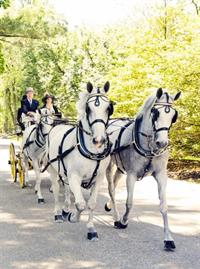 The Unicorns and Four-in-Hands class was won by John White, who was also crowned the Drive-Off Champion. He was accompanied by three other passengers in a Heavy Dog Cart carriage. The vintage vehicle was pulled by four beautiful grey Kladruber horses.