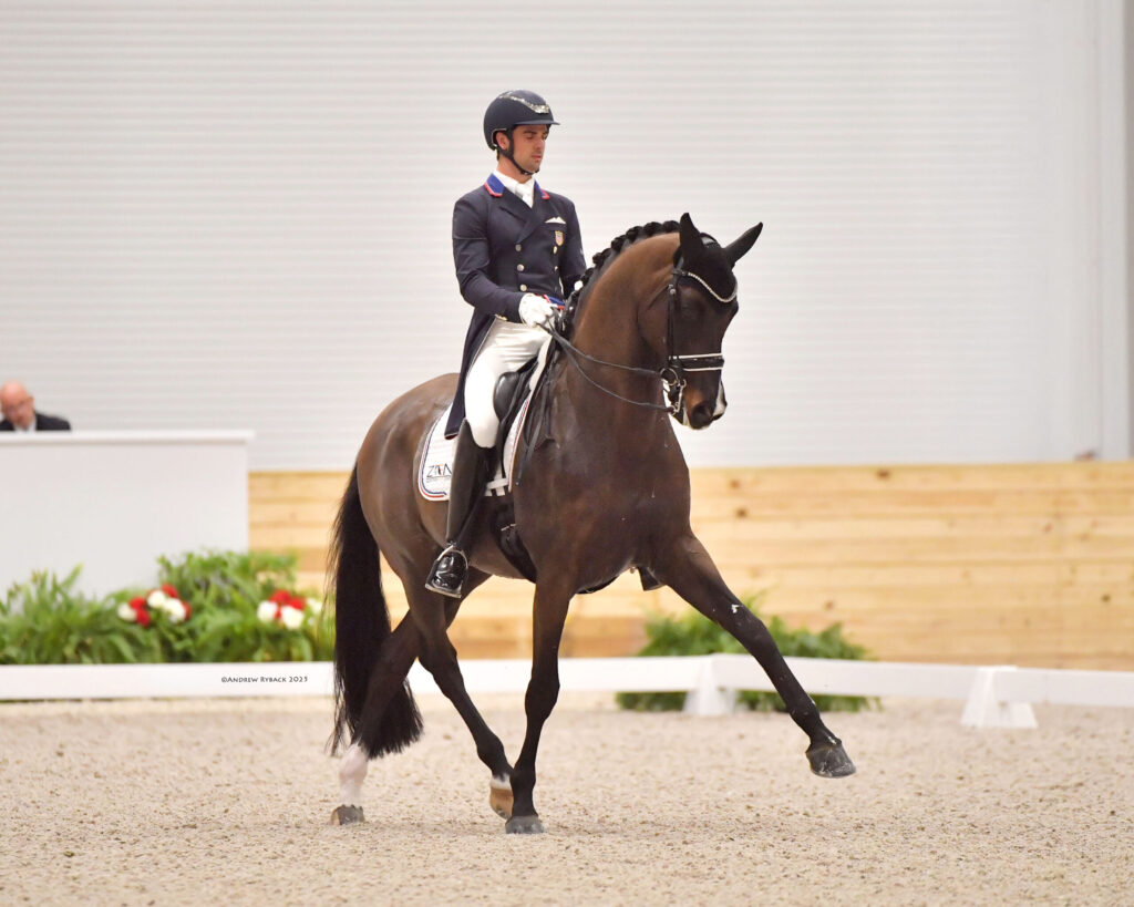 Christian Simonson is a rising star on the dressage scene. After numerous top results as a young rider, he moved up to the senior level and has continued his success. Christian rode Son of a Lady at the 2023 Pan American Games in Santiago, Chile, helping the U.S. Dressage Team win gold. He and one of his current mounts, the experienced Indian Rock, have a promising partnership, already collecting several wins such as the Grand Prix Champion title at the 2025 U.S. Dressage Festival Champions.