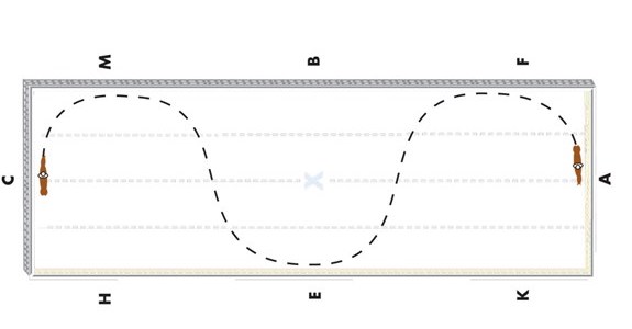 The serpentine includes a series of loops up and down your arena that requires you change your diagonal with every loop as you continue to change directions. Riding a three-loop serpentine (or as many loops as your arena allows) is another great exercise to practice changing your diagonals while also ensuring your horse works evenly in both directions.