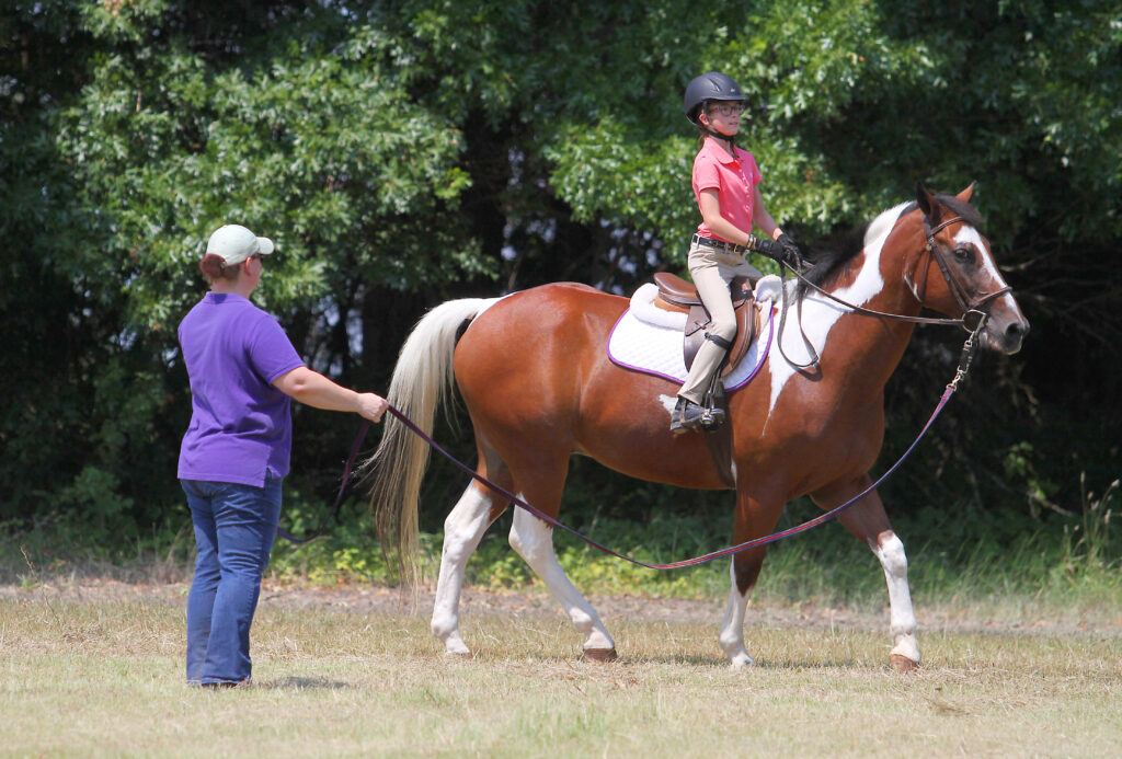 Work on the longe line: Riding on a longe line (where you instructor controls your horse’s movement on a circle) offers many benefits. Without having to worry about directing your horse’s movement, you can focus on your position, balance and feeling how your horse’s legs move at the trot. Your instructor can help you determine when you should be rising and sitting; and without having to steer, you’ll more easily be able to look down to see the movement of your horse’s shoulders. Once you gain more confidence, you can even practice closing your eyes on the longe line to better feel how your horse’s shoulders move at the trot.