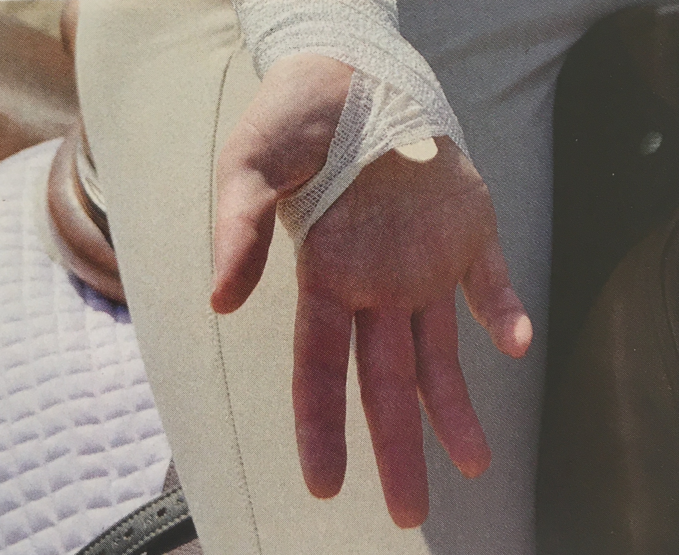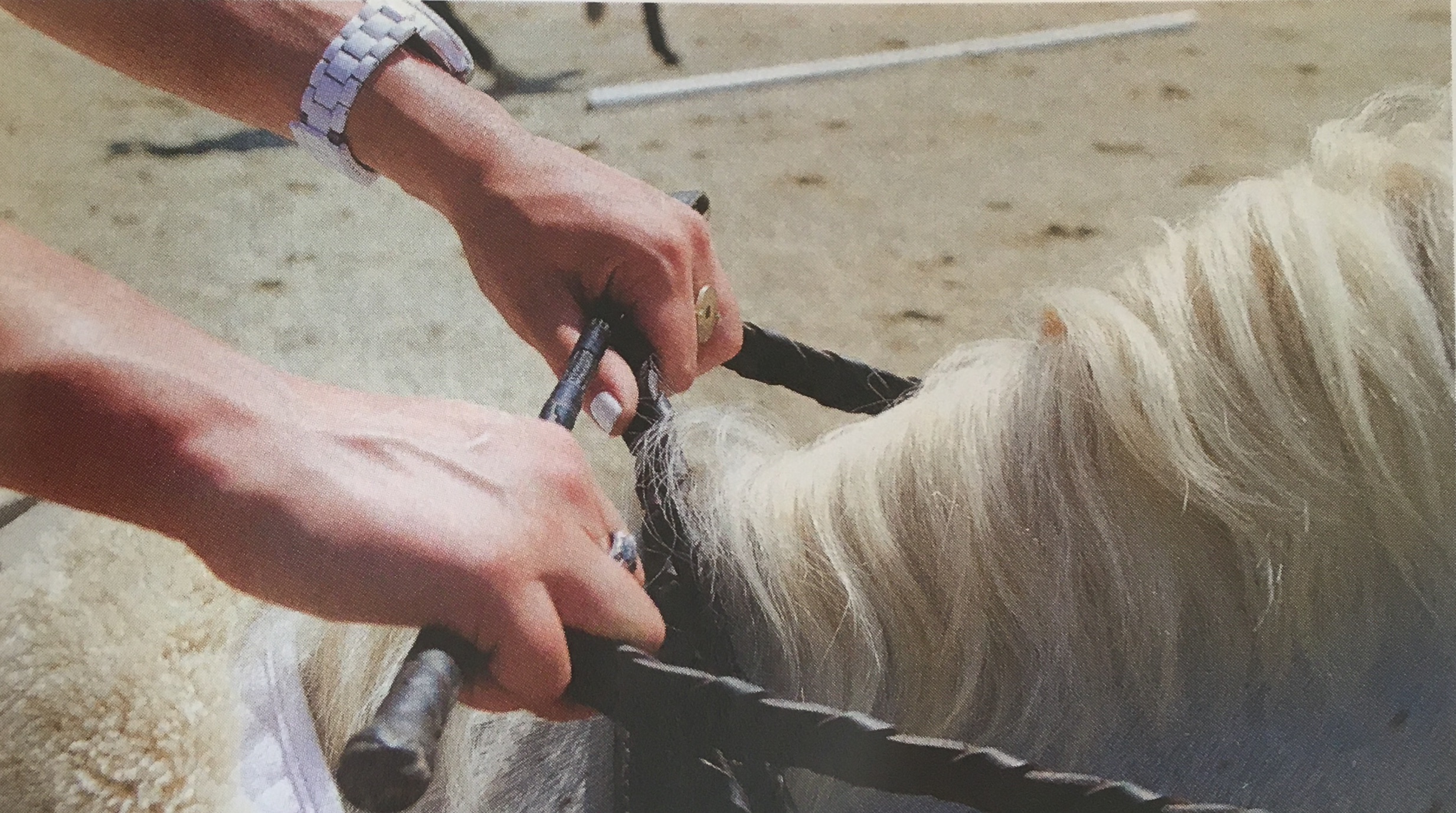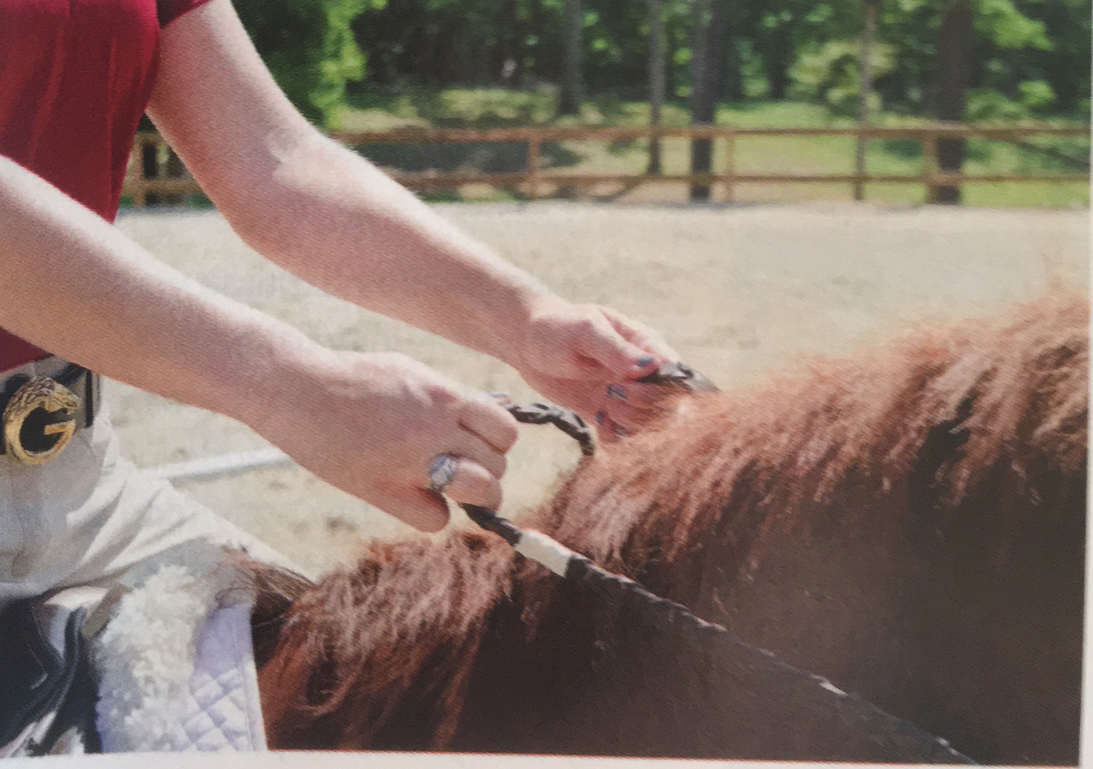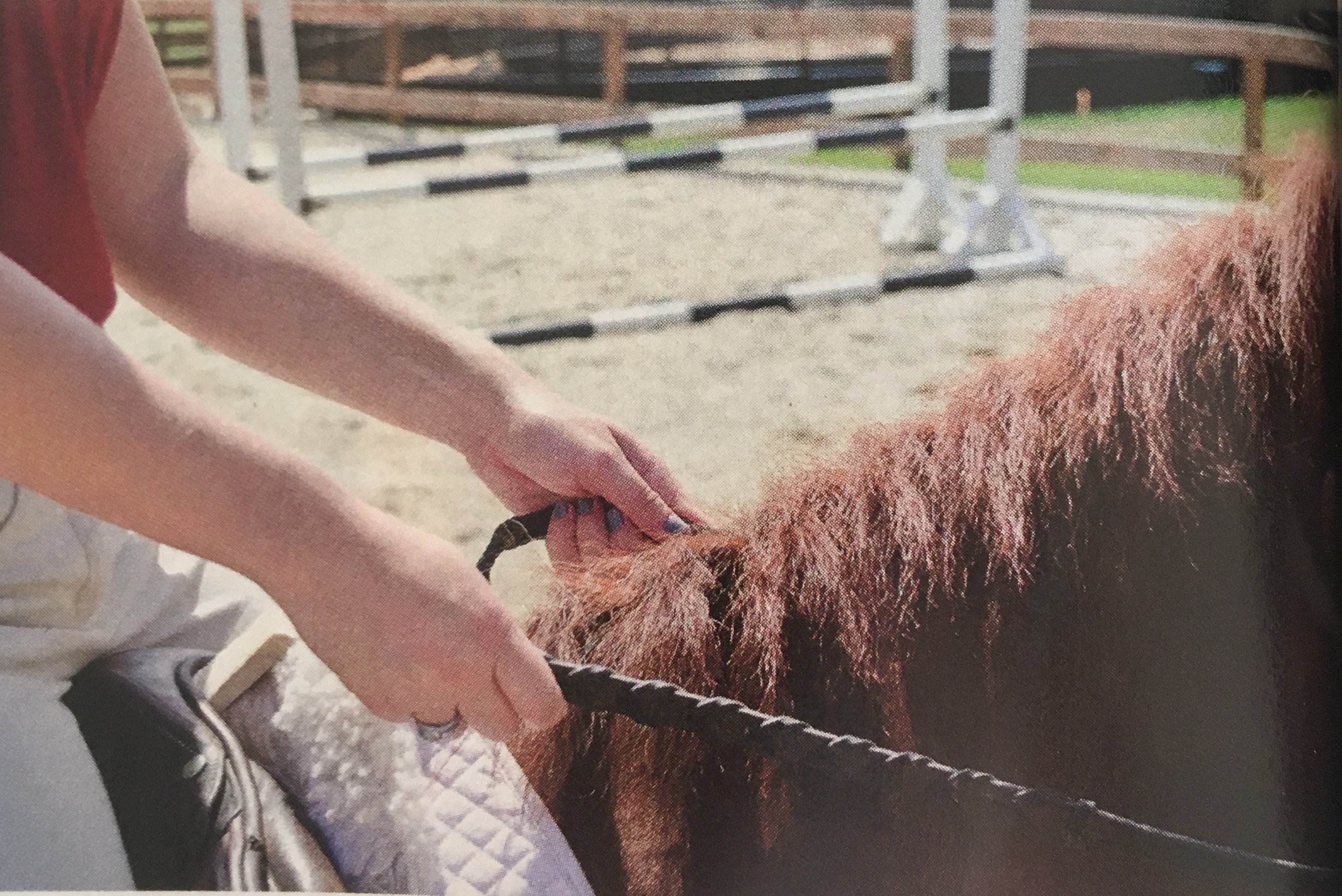 Fix 3: Practice riding while holding a bat (very short whip) horizontally with one end pressed against the palm of each hand. This will keep your hands steady and parallel to your horse’s neck.