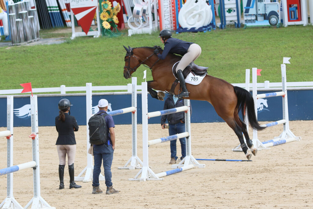 First thing in the morning, before the show starts, many organizers open the rings for schooling. This is an excellent opportunity to introduce your horse to the sights and sounds of the ring. You can show him any unusual-looking jumps and ride into those corners where he suspects there might be boogeymen. The only horses we wouldn’t advise schooling in the show ring are especially mellow, hard-to-impress types who perform better when seeing new jumps and surroundings for the first time.