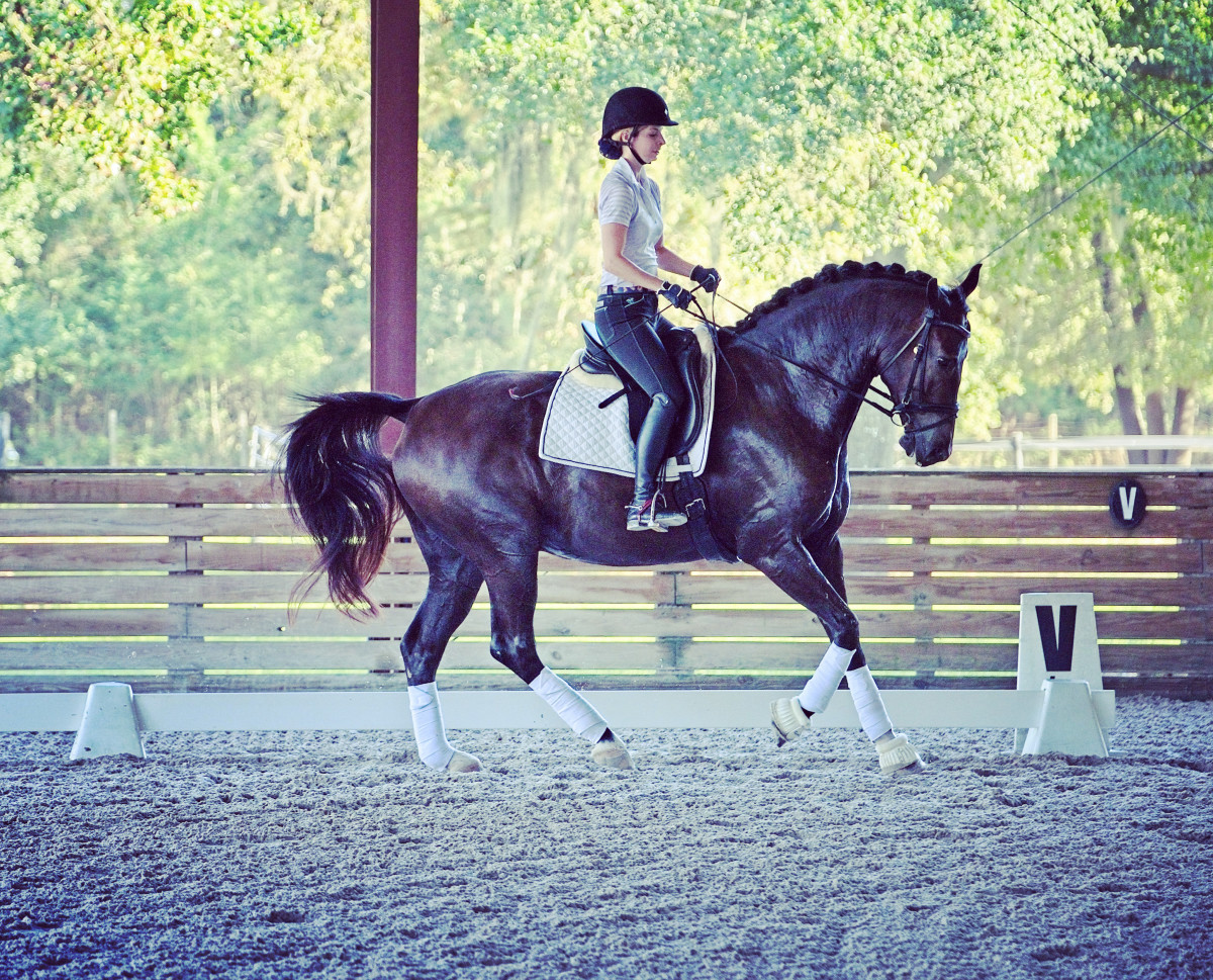 The featured photo shows Suzanne Whitman on her 12-year-old Dutch gelding named Contego. They have shown First Level, are ready for Second Level and are schooling some Third Level movements.