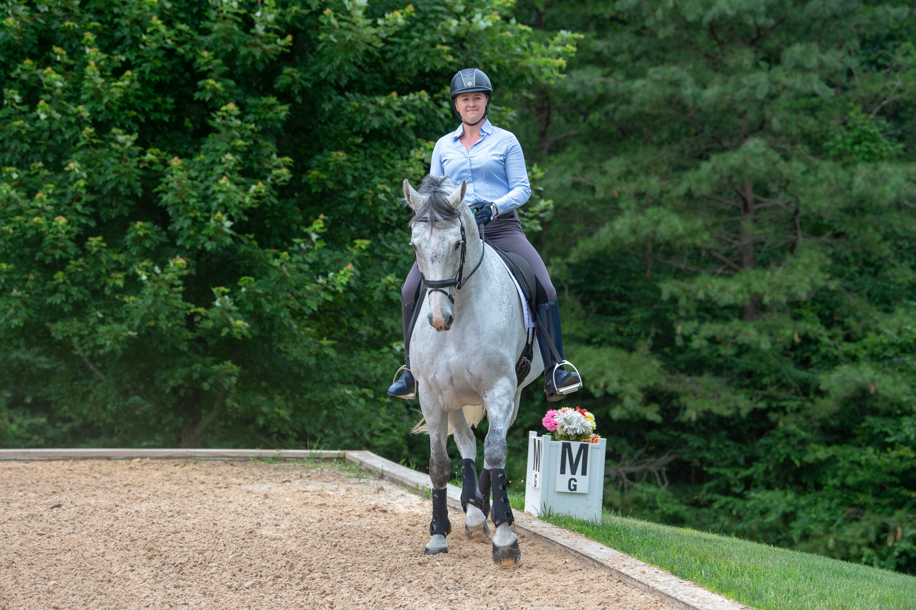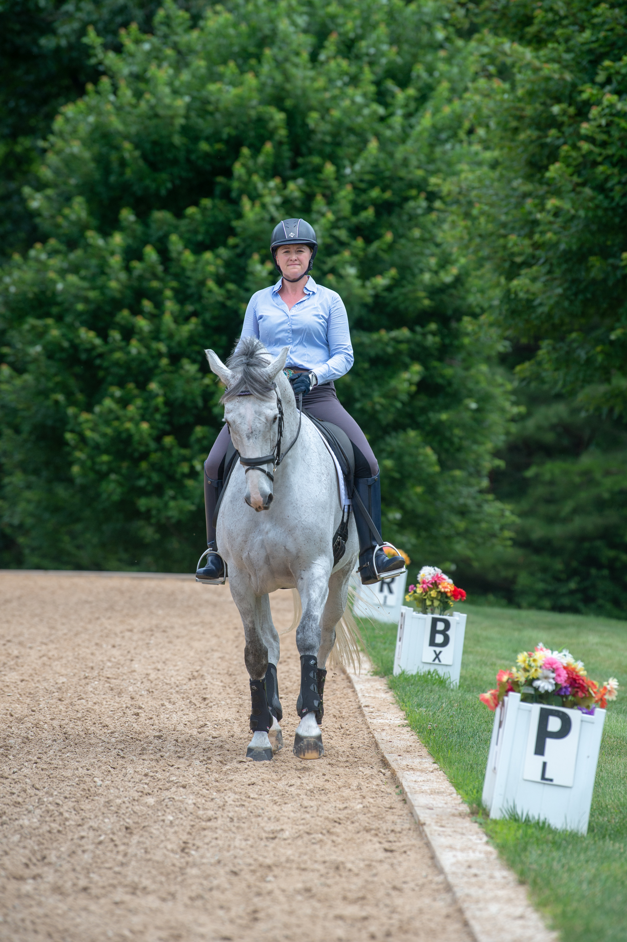Don’t forget to finish the movement! I see so many riders fail to straighten the horse after the shoulder-in and, as such, their horses end up either fishtailing out through the corner like a Honda on ice or falling on the forehand. If you’re riding a test where the shoulder-in is followed immediately by a volte (small circle), the last step of shoulder-in should be the first step of your turn around the circle. Otherwise, end each shoulder-in by traveling straight for at least a step or two. This tests your control of your horse’s body and shows said control off to the judge. Anybody can let a horse fall apart through a corner, but it takes tact and mastery to finish the shoulder-in and then immediately ride a proper corner.